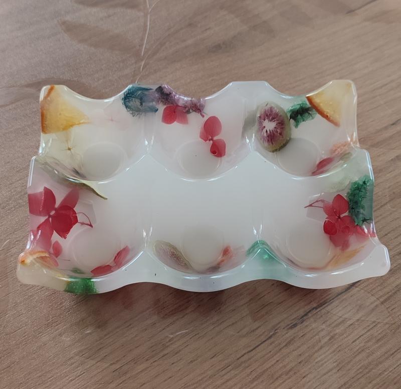 Уникальная подставка для яиц. Эта очаровательная форма выполнена из эпоксидной смолы с добавлением сухоцветов. Добавьте нотку волшебства и красоты на ваш стол. В наличии есть разные цвета.