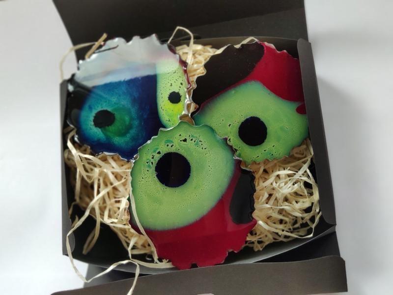 Подстаканники из эпоксидной смолы с термостойким покрытием. Диаметр 9.5см Стоимость указана за набор из 3шт! Упакованы в подарочную коробку!