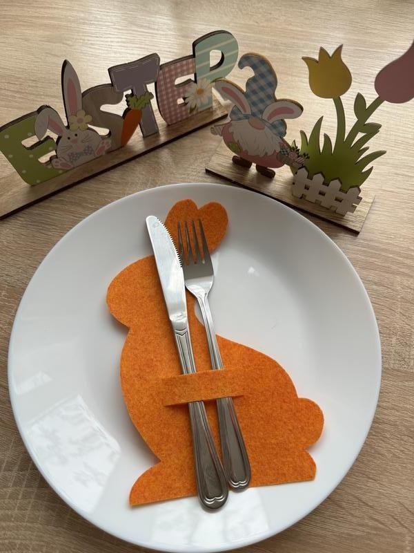 Доступні до замовлення зайчики з жорсткого фетру. Призначені як декор для столових приборів на Великодній стіл. Довжина зайчиків - 20 см. Можливі різні варіанти кольорів. 6 штук - 180 грн. 12 штук - 320 грн. 18 штук - 460 грн.