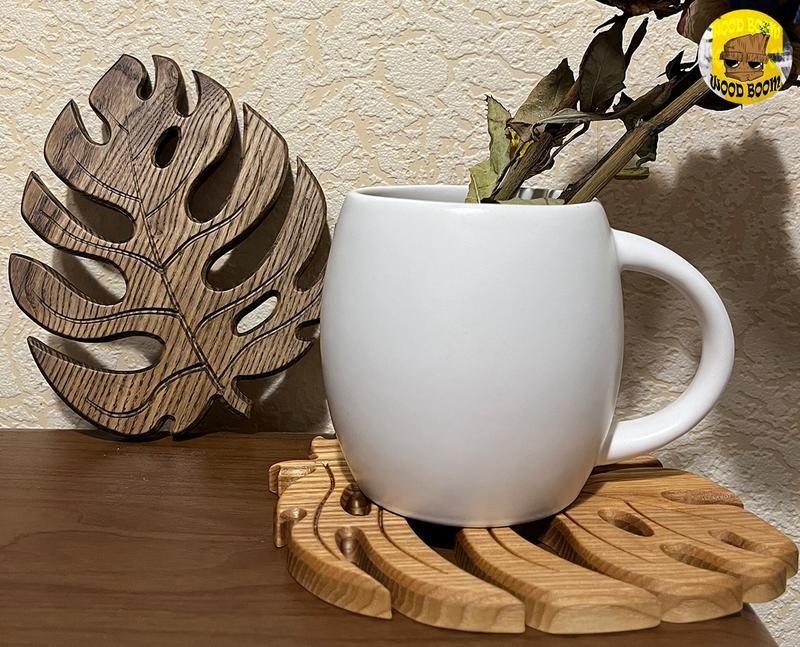 Подставки под чашки несут не только декоративный характер, но и защищают поверхность стола от царапин и пятен, оставленных после кружек. Мы постарались и сделали дизайн костера в виде всеми любимого листа монстеры. Получилось лучше, чем представляли, только фото не отражает всю красоту изделия, а вот когда держишь его в руках ... Мы являемся непосредственным производителем деревянного декора, поэтому можем внести любые изменения в дизайн подставок под горячее или разработать индивидуальный макет. Вы можете заказать оригинальные костеры в любом количестве, они станут красивым дополнением праздничного стола и отлично впишутся в общую стилистику вашего торжества. Изготовлены такие подставки под чашки из экологически чистого материала - натуральной дубовой фанеры / дуба/ ясеня/ольхи. Мы также можем изготовить деревянные костеры с логотипом заведения или со знаковой фразой на подарок близкому Вам человеку! Размеры: 17x14 см, толщина 1-1,2 см. ТОВАР МОЖЕТ ОТЛИЧАТЬСЯ ОТ ФОТО, ИМЕТЬ НЕРОВНОСТИ! ПОМНИТЕ, ЧТО НЕ БЫВАЕТ ИДЕНТИЧНЫХ ДЕРЕВЬЕВ ПО ТЕКСТУРЕ =) Дополнительные характеристики: Материал : Дерево Форма: Фигурная Персонализация : С гравировкой