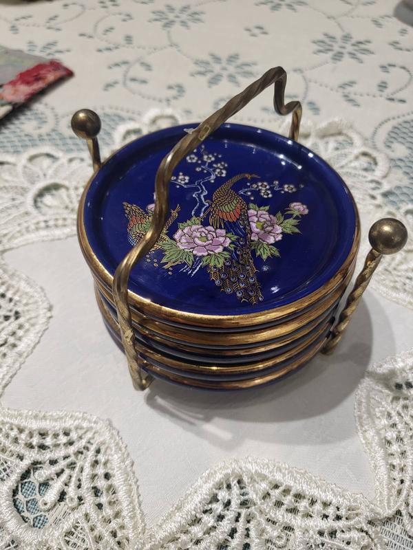 Набор фарфоровых подставок пять штук на подставке из латуни.виньаж ! в отличном состояние