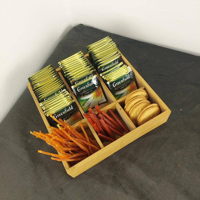 Органайзер под чай дубовый на 9 ячеек, 240*240*55мм рассчитан для хранения как пакетированного чая так и других продуктов (конфет, кофе в стеках, печенья, снеков и т.п.). Станет незаменимым на Вашей кухне и поможет все организовать в одной плоскости, соединить подобные продукты рядом. Органайзер дубовый можно использовать также в заведениях по типу кофейни, кафе или ресторана. Органайзер под чай на 9 ячеек изготовленный из натурального дерева дуб, покрытый маслом воском, имеет 9 ячеек для расположения. Вмещает достаточное количество продукции. Особенности: Материал – натуральное дерево дуб; Покрытие – масло воск; Размер – 240/240/55 мм. Купите у нас такой органайзер ручной работы на свою кухню или в свое заведение. По всем дополнительным вопросам свяжитесь с нами.