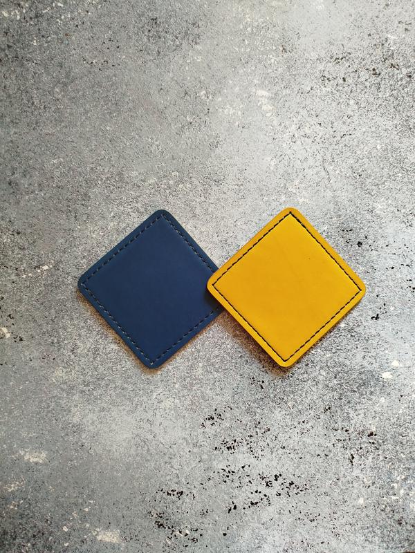 Кожаная подставка под стакан, кружку или бокал. Размер 85*85мм. Прошита вручную прочной нитью. Услужит в качестве аксессуара и защиты стола от горячего или влаги. Цена указана за 2 штуки