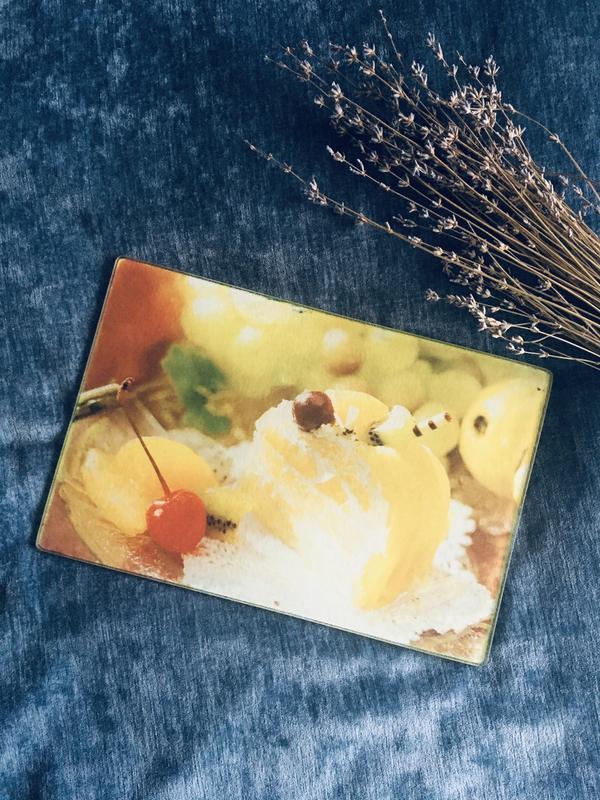 🔥Красива🔥 винтажная сервировочная доска для нарезки и подачи фруктов, овощей, хлеба, мясо-колбаных изделий, пирожных и др. 🥰 Состояние хорошее. Изготовлена из толстого каленого жаростойкого прочного стекла. Имеет фактурную поверхность. Тяжелое, массивное, качественное, добротное. Следы времени и использования незначительны. 🤗 Размеры : 29,5 х 19,5 см.