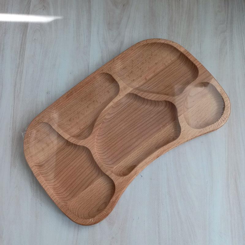 Менажниця дерев'яна Хвилька 32х18 см на 5 секцій, БУК Менажниця з натурального дерева на 5 відділів стане крутою прикрасою для вашого столу! Здивуйте своїх гостей подачею страв. Деревʼяні стінки менажниці досить товсті, а отже гарячі страви не пектимуть руки та не нагріватимуть покриття столу. Посуд зроблений з натурального дерева, дуже приємний на дотик і має приємний запах. Наш посуд з дерева - екологічний та натуральний. Дерев'яна менажниця - це маленька приємність для себе і хороший подарунок для близьких. Одна порційна страва, поділена всередині на кілька осередків, дозволяє покласти в одну тарілку різну їжу, не змішуючи її між собою. Таку тарілку можна використовувати для м'ясних та рибних страв. Ідеально підійде для подачі овочів та фруктів. Ця тарілка буде стильно та елегантно виглядати на святковому столі, а також радуватиме Вас у щоденному використанні. СПОСІБ ДОГЛЯДУ: мити під проточною холодною водою, витирати насухо після кожного використання . Час від часу змащувати соняшниковою олією, після чого дати ввібратися. Не використовувати в посудомийній машині, мікрохвильовій печі та духовці