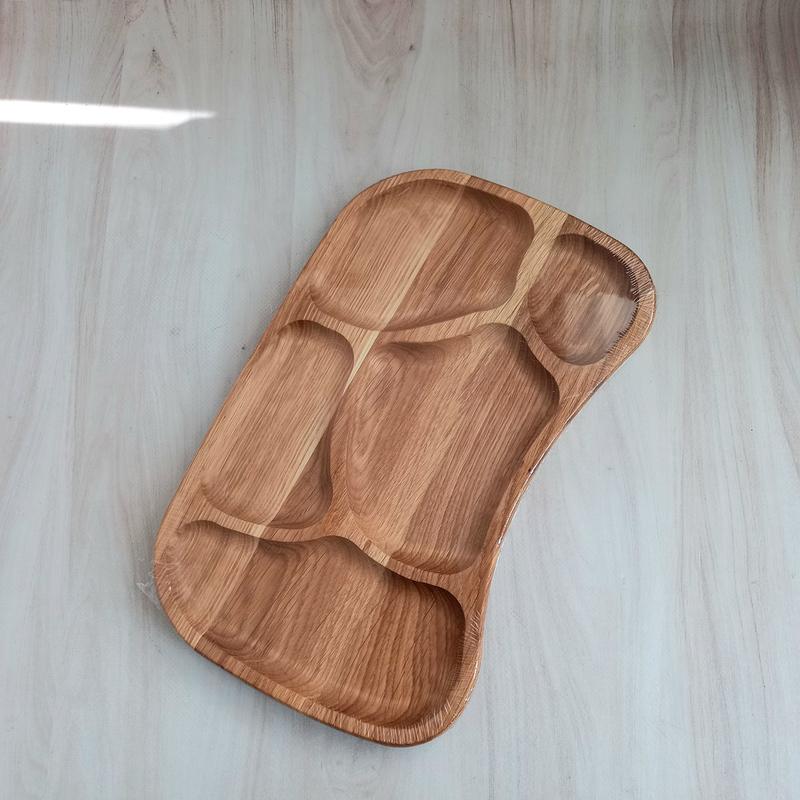Менажниця дерев'яна Хвилька 32х18 см на 5 секцій, ДУБ Менажниця з натурального дерева на 5 відділів стане крутою прикрасою для вашого столу! Здивуйте своїх гостей подачею страв. Деревʼяні стінки менажниці досить товсті, а отже гарячі страви не пектимуть руки та не нагріватимуть покриття столу. Посуд зроблений з натурального дерева, дуже приємний на дотик і має приємний запах. Наш посуд з дерева - екологічний та натуральний. Дерев'яна менажниця - це маленька приємність для себе і хороший подарунок для близьких. Одна порційна страва, поділена всередині на кілька осередків, дозволяє покласти в одну тарілку різну їжу, не змішуючи її між собою. Таку тарілку можна використовувати для м'ясних та рибних страв. Ідеально підійде для подачі овочів та фруктів. Ця тарілка буде стильно та елегантно виглядати на святковому столі, а також радуватиме Вас у щоденному використанні. СПОСІБ ДОГЛЯДУ: мити під проточною холодною водою, витирати насухо після кожного використання . Час від часу змащувати соняшниковою олією, після чого дати ввібратися. Не використовувати в посудомийній машині, мікрохвильовій печі та духовці