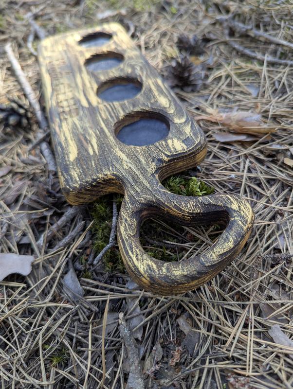 *Идеальный вариант для кухни бара кафе ресторана *Играние подарочное или лого название вашего заведения *Деревина стабилизирована и устойчива к повреждениям * Кожаные вставки * Диаметр отверстий и их расположение рассматривается * Количество отверстий варьируется от 2 до 15 шт * Есть видеопросмотр на Ютубе Встречайте идеальный аксессуар для ваших вечеринок и посиделок с друзьями! Эта уникальная деревянная шотница, выполненная вручную, станет настоящим украшением стола и добавит атмосферы в любое событие. * Ручная работа: Каждая шотница изготавливается из натурального дерева с любовью и вниманием к деталям. * Надписи-брендинг: Изделия могут иметь гравирования "Organic House" или "Viking Spirit", что добавляет им характера и идентичности. * Оригинальный дизайн: Эффектная текстура дерева и удобная ручка делают ее не только функциональной, но и очень стильной. * Универсальность: Идеально подходит для подачи шотов, а также может использоваться в качестве подсвечника для создания уютной атмосферы. * Идеальный подарок: Отличный выбор для друзей, коллег или любого любителя оригинальных и практичных вещей. * Доступны различные цветные гаммы * Стильный дизайн: Груба, но изысканная текстура дерева и фактурное покрытие (красное, золотое, черное) создают неповторимый вид. * Многоцелевое использование: * Шотница: Идеально вмещает три шота для удобной подачи напитков. * Подсвечник: Создает романтическую и уютную атмосферу с тремя свечами. * Декоративный элемент: Самостоятельно выступает изысканным элементом декора. * Прекрасный подарок: удивляйте своих близких уникальным и практичным подарком на любой праздник. * Качество и долговечность: Изготовлено из прочного дерева, прослужит вам долгие годы.