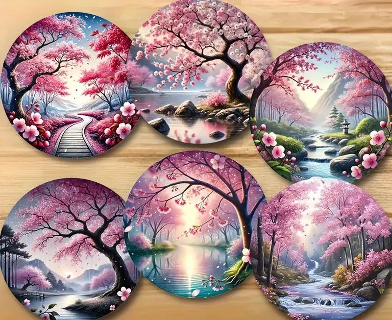 Набор деревянных подставок под чашки сакура 6 шт.