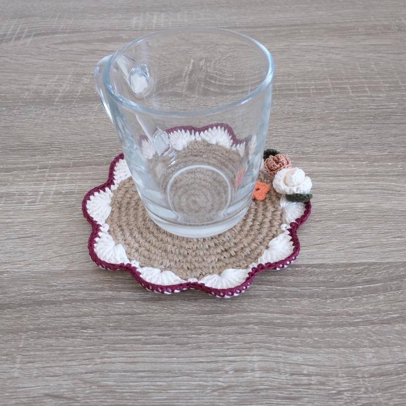 Вот несколько вариантов описания: 🌿Вязаная крючком подставка для чашки из джутовой и хлопковой пряжи – это сочетание природной прочности и домашнего уюта. Диаметр 14 см, идеально подходит для ежедневного использования и создает теплую атмосферу за вашим столом.