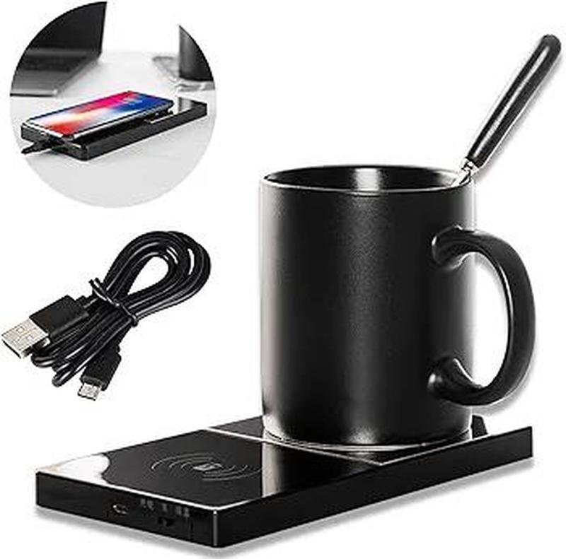 Этот многофункциональный подогреватель чашек - идеальный аксессуар для офисного стола, сочетающий в себе функцию подогрева напитков (кофе, чай, какао, молоко) и беспроводное зарядное устройство для вашего смартфона. Он поддерживает ваш напиток теплым и одновременно заряжает ваше устройство. Ключевые характеристики * Тип товара: Подогреватель напитков и беспроводное зарядное устройство (2-в-1). * Назначение: Поддержание оптимальной температуры напитков и беспроводная зарядка QI-совместимых устройств. * Особенности: * Интеллектуальный подогрев: Быстро и эффективно поддерживает напиток теплым. * Функция 2-в-1: Переключение между режимом подогрева (для чашек) и режимом беспроводной зарядки (для смартфонов). * Питание: Работает от USB, что позволяет подключать его к компьютеру или сетевому адаптеру. *Дизайн: Компактный, стильный дизайн (настольное костер/тарелка). * Совместимость: Подходит для большинства чашек с плоским дном.