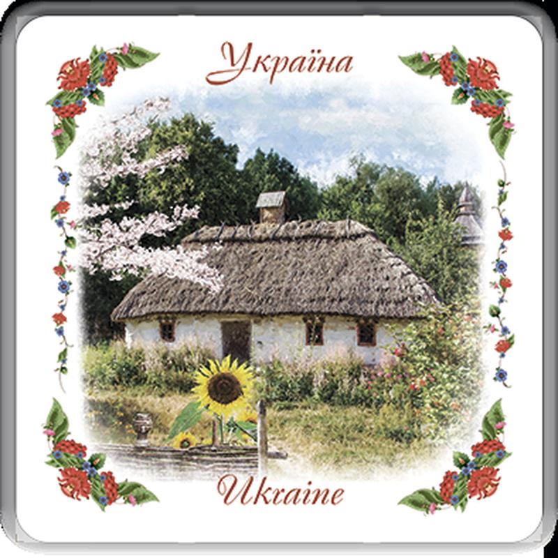 Подставка под чашку (костер) хата з соняшником 10х10 см укк05т410х10 тур-колекшн