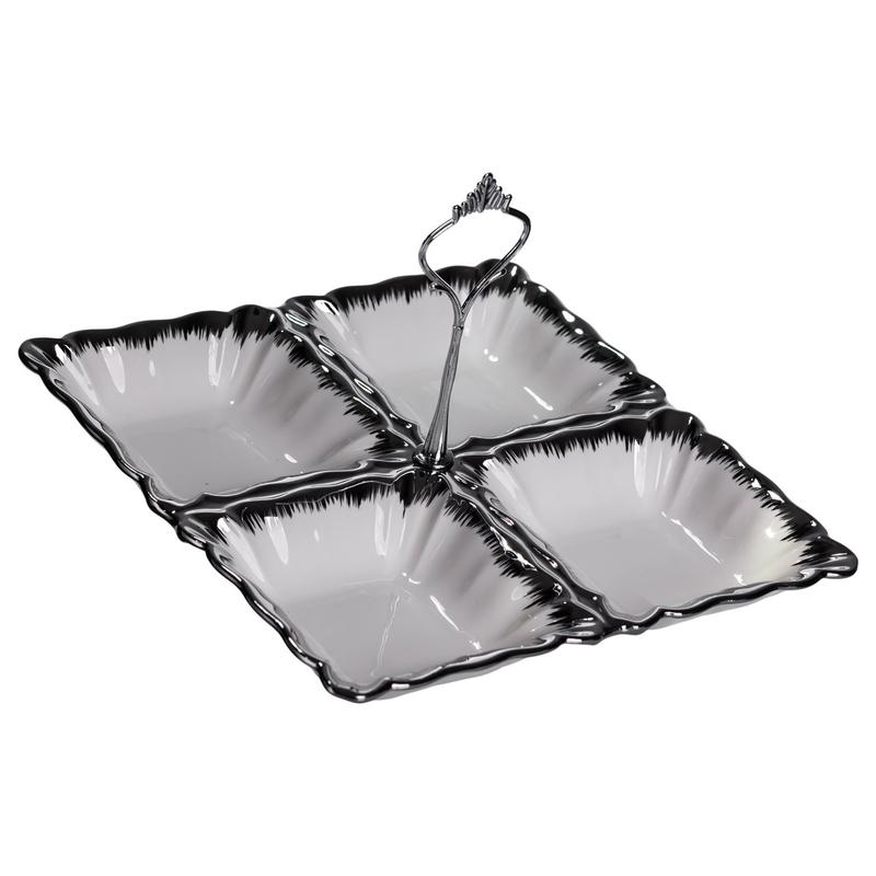 Менажница фарфоровая на 4 секции 22.5×22.5×3 (см) с ручкой белый с серебром lc-byl-101-s