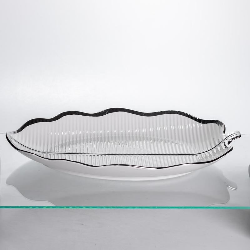 Стильный минимализм на вашем столе! Эта оригинальная менажница создана для тех, кто ценит современный дизайн и лаконичность форм. Выполнена из белоснежного фарфора, она имеет изящную, плавную форму, напоминающую крупный лист. Главная особенность дизайна - контрастный черный ободок, который подчеркивает контур изделия и придает ему выразительности. Переваги порцелянового блюда: Удобство 2-в-1: Блюдо разделено перегородкой на две секции. Это позволяет эстетично подавать различные виды закусок, овощей, солений или снеков, не смешивая их между собой. Эргономичная форма: Благодаря форме "листка", блюдо выглядит небанально, а отсутствие массивных ручек делает его компактным и легким визуально. Универсальность: Черно белая гамма идеально впишется в любой современный интерьер кухни. Основные характеристики блюда для сервировки стола: Тип: Блюдо сервировочное / Менажница; Материал: Фарфор (Фарфор); Количество секций: 2; Дизайн: Форма листка, черный ободок; Цвет: Белый с черным; Габариты изделия (ДхШхВ): 35.5 x 24 x 4 см; Вес: 0.800 кг. Это блюдо станет стильным акцентом вашей сервировки, добавляя нотку современной эстетики.