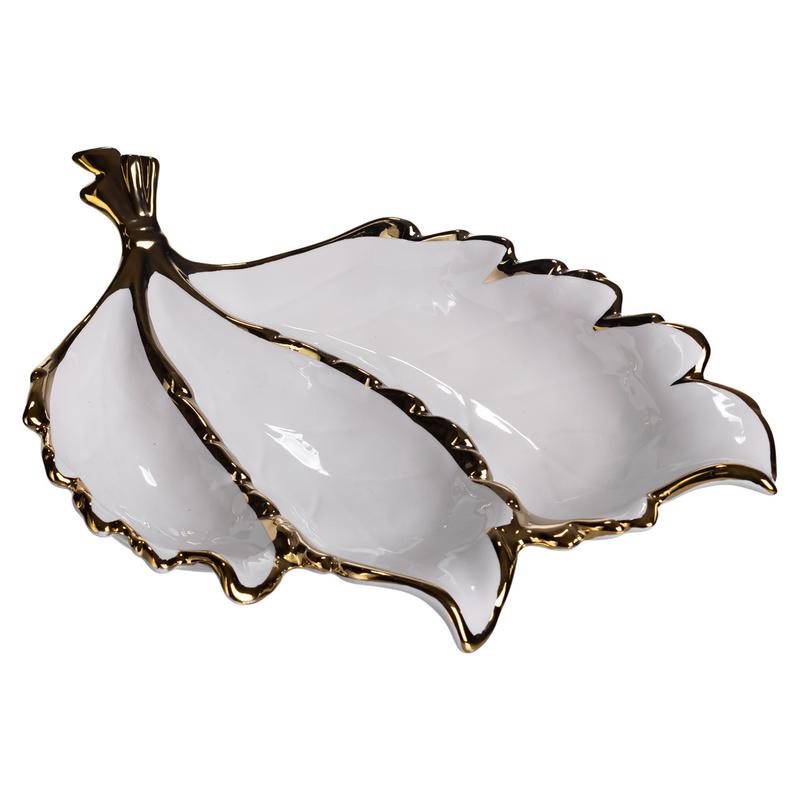 Менажница фарфоровая на 3 секции для закусок 40×25×7.5 (см) тарелка менажница белый с золо...