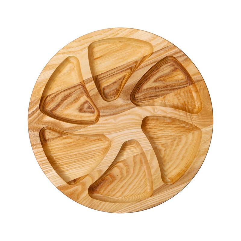 Менажница деревянная 30 см круглая на 6 секций, ясень t30w300