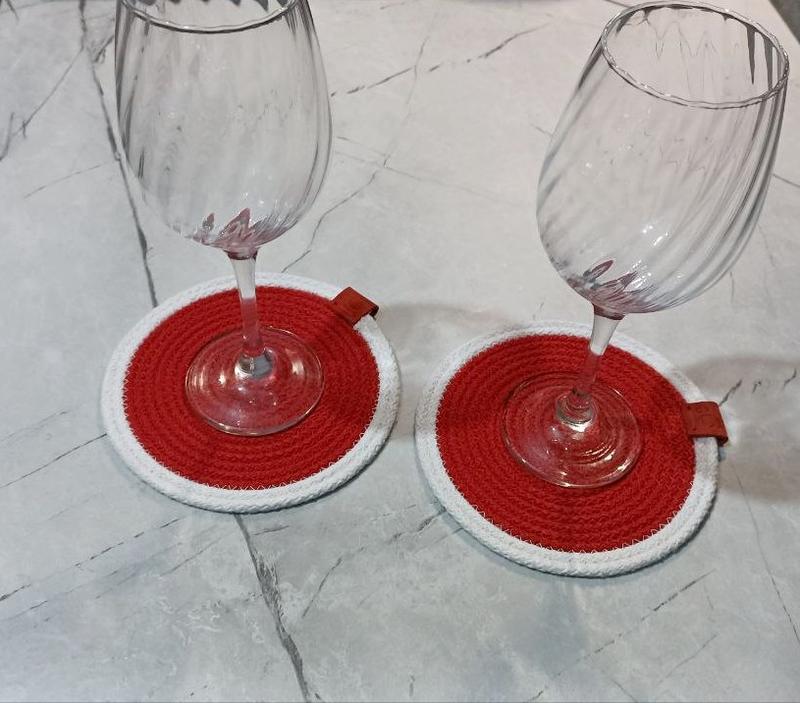 Набор из двух плейсматов подставок под напитку из шнура Rosso Festa Duo, 15 см - праздничный акцент для уютных моментов за столом. Сочетание насыщенного красного цвета с контрастной белой обводкой создает атмосферу тепла, радости и новогоднего настроения. Подставки изготовлены из качественного хлопкового шнура и аккуратно прошиты вручную, что обеспечивает ровную форму, плотность и долговечность изделия. Они надежно защищают поверхность стола от следов напитков, царапин и тепла, оставаясь при этом стильным элементом сервировки. Набор Rosso Festa Duo идеально подходит для подачи вина, глинтвейна, кофе или чая во время зимних праздников, романтических вечеров или праздничных встреч. Также станет отличным подарком к Новому году или Рождественству – практичным, атмосферным и сделанным с любовью к деталям. Характеристики: - Размер: диаметр 15 см - Материал: хлопковый шнур - Уход: легкая очистка влажной салфеткой или ручная стирка при необходимости