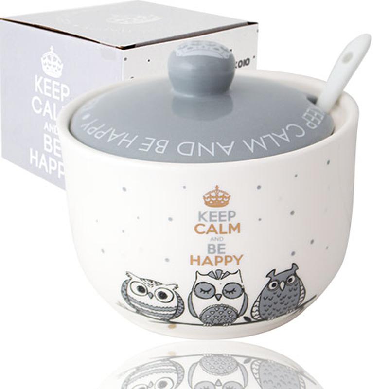 Сахарница с ложкой 450мл 'совушки' (d-11см, h-7,5 см)