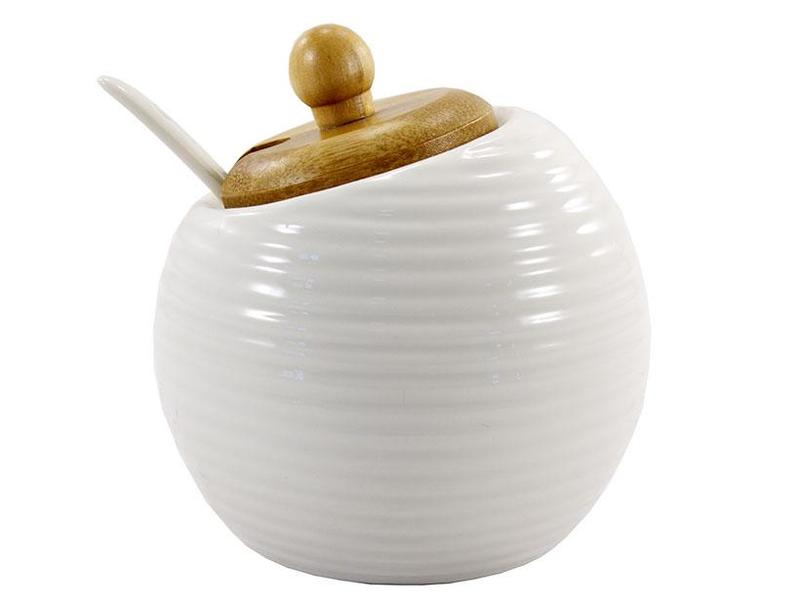 Сахарница Interos PJ03396 Сахарница Interos PJ03396 на 320 мл изготовлена из фарфора. Такая сахарница легко моется и сохранит привлекательный внешний вид на протяжении долгого времени. Очень красиво будет смотреться при сервировке стола во время чаепития. Характеристики: - Тип: сахарница - Материал: фарфор - Материал ложки: фарфор - Материал крышки: бамбук - Объем: 320 мл - Можно мыть в посудомоечной машине - Цвет: белый - Производитель: Interos