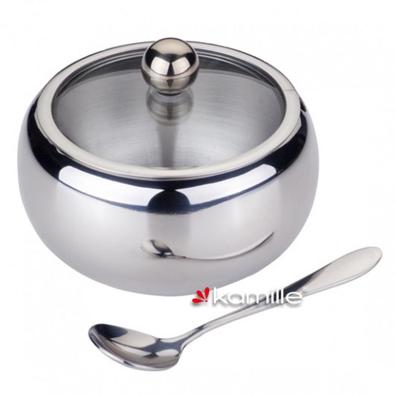 Сахарница из нержавеющей стали 460мл с ложечкой и стеклянной крышкой kamille 7002