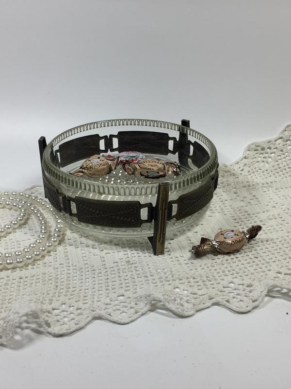Изысканная конфетница из стекла с декоративным металлическим обрамлением н4515 винтаж