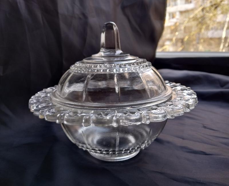 Старая винтажная сахарница шар, стекло, клеймо 1950е года.