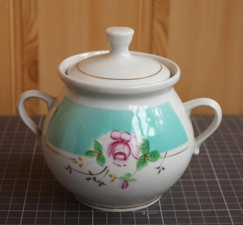 Фарфоровая сахарница Довбишевского фарфорового завода советских времен. Чайная роза. без трещин, сколов и царапин. Незначительный ступенчатый позолоты