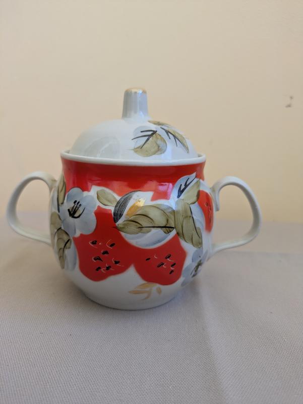 Сахарница фарфоровая винтажная Клубники Полонне Ручная роспись Очень хорошее состояние Нюанс: на внутренней стороне крышки маленький скол (незаметно с наружи, есть на фото)
