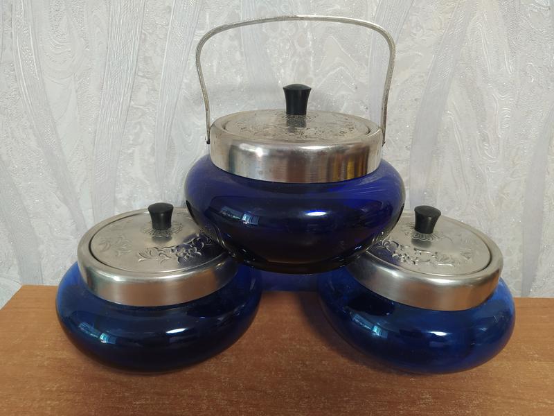 Сахарница синее стекло.