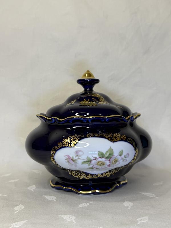 Lindner Cobalt Blue — бонбон’єрка з кобальтового фарфору, Німеччина. У відмінному стані, є нюанс усередині на кришці — невеликий відкол, враховано в ціні, на використання це ніяк не впливає. За запитом надішлю додаткові фото. Дивіться інші мої оголошення.