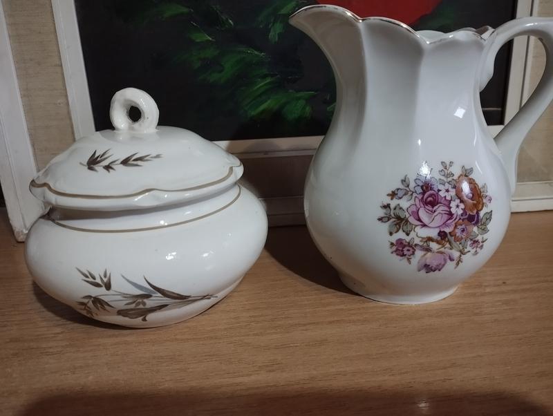 Остатки от сервизов.Цукерница и молочник. Фарфор. Без потерь.Высота конфеты-11см. Молочник13.5 см.Цена за единицу. Перед покупкой уточняйте наличие товара