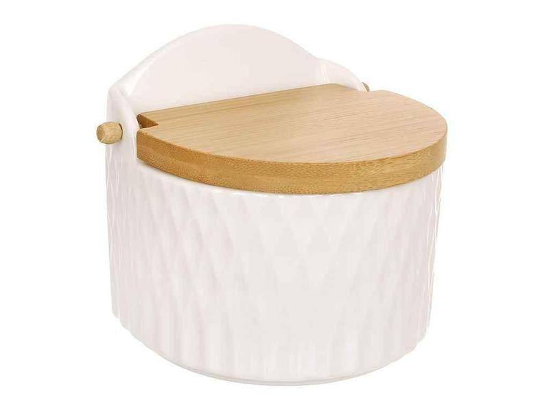 Матеріал: Порцеляна Матеріал: Бамбук Колір: Білий Фабрика: 289 Розміри: 12*10*10.5см, 450мл Упаковка: біла картонна коробка 1 30 Колекція: Naturel Кількість дизайнів: 1 Категория: Цукорниці