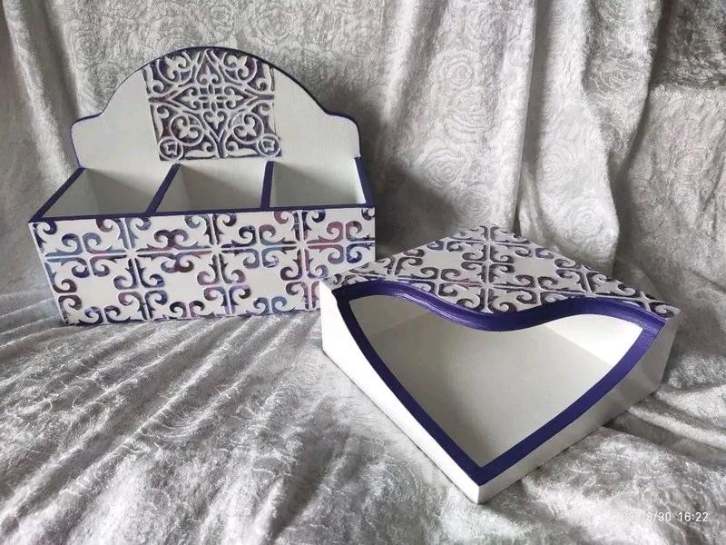 В наборе:органайзер на 3 отделения и салфетница. Органайзер. 💙Материал Эврофанера 💛Размер 22*10*8,5.По задней стенке высота 17 см Салфетница: 💙Рассчитана на обычные столовые салфетки(25*25) 💛Размеры:14,5*14,5*5,5 см