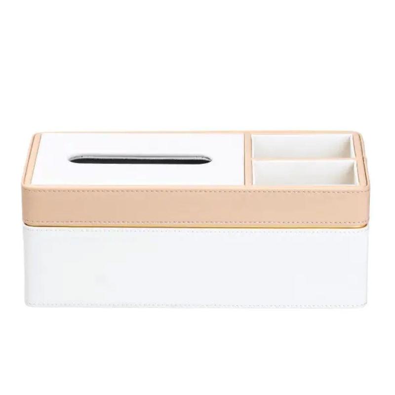 Салфетница-органайзер из эко-кожи 3 отделения 27*14*'10 см белый с бежевым hp9190