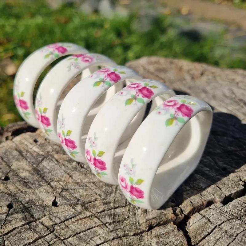 Надзвичайно вишукані і ніжні кільця для серветок з ніжними квітами, 5 шт🌸 Німеччина. Матеріал- порцеляна. Чудовий стан, на глазурі присутня патіна.