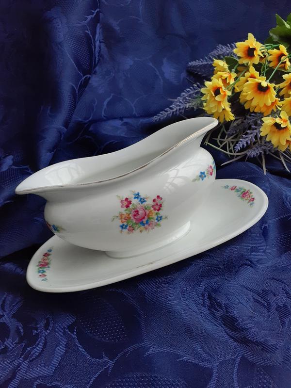 1930-е! z. m. czechoslovakia антикварный старорольский фарфор соусник на подставке подносе...