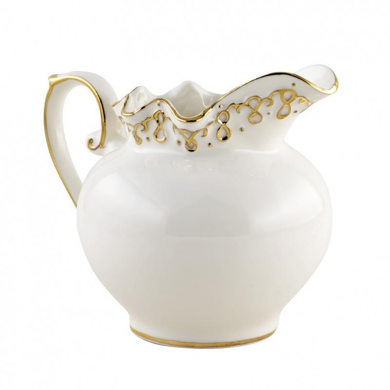 Молочник виготовлений з порцеляни. Матеріал відрізняється міцністю, механічною і термічною стійкістю, стійкістю до різних кислот. Порцеляну виготовляють шляхом високотемпературного обпалення суміші каоліну, кварцу, польового шпату і глини. Молочник необхідний для класичного чаювання, щоб кожен охочий міг розбавити чай молоком. Він прикрашений вишуканим орнаментом золотистого кольору. Молочник прекрасно доповнить сервіровку столу. Його можна придбати окремо або в комплекті з чайно-столовим сервізом.