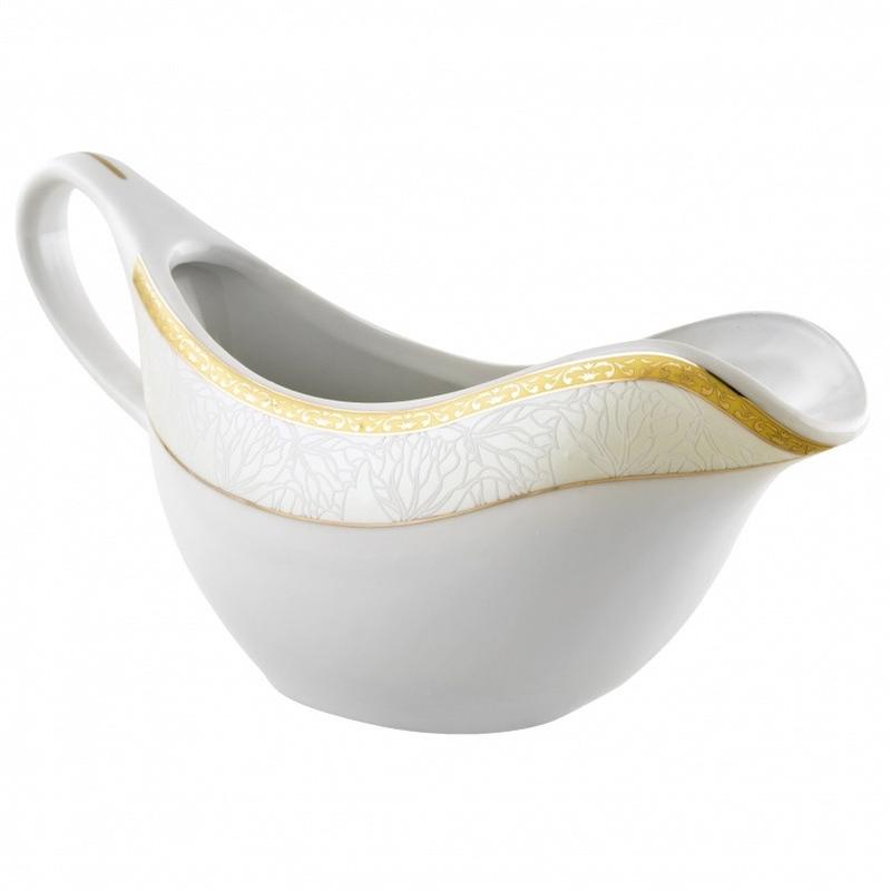 Зручність соусника безпосередньо залежить від його форми і розмірів. Даний соусник простіший і доступніший свого історичного побратима. Однак він не втратив своєї елегантності і чарівності. При сервіровці соусник прийнято ставити з лівого боку тарілки на спеціальне блюдо, щоб краплі соусу не стікає на стіл. Цей соусник виготовлений з кістяної порцеляни. Кістяний фарфор в Європі називали королівським або білим золотом. У Китаї, звідки він родом, за благородну тонкість його називали «яєчною шкаралупою». Секрет виробництва зберігали як зіницю ока. Для кістяної порцеляни характерна особлива білосніжність, витончена тонкість і благородний звук при постукуванні. Тепер можна розкрити віковий секрет: всіма цими властивостями фарфор наділяє кісткова зола тваринного походження. Завдяки натуральній сировині, вироби з кістяної порцеляни абсолютно безпечні для здоров'я.