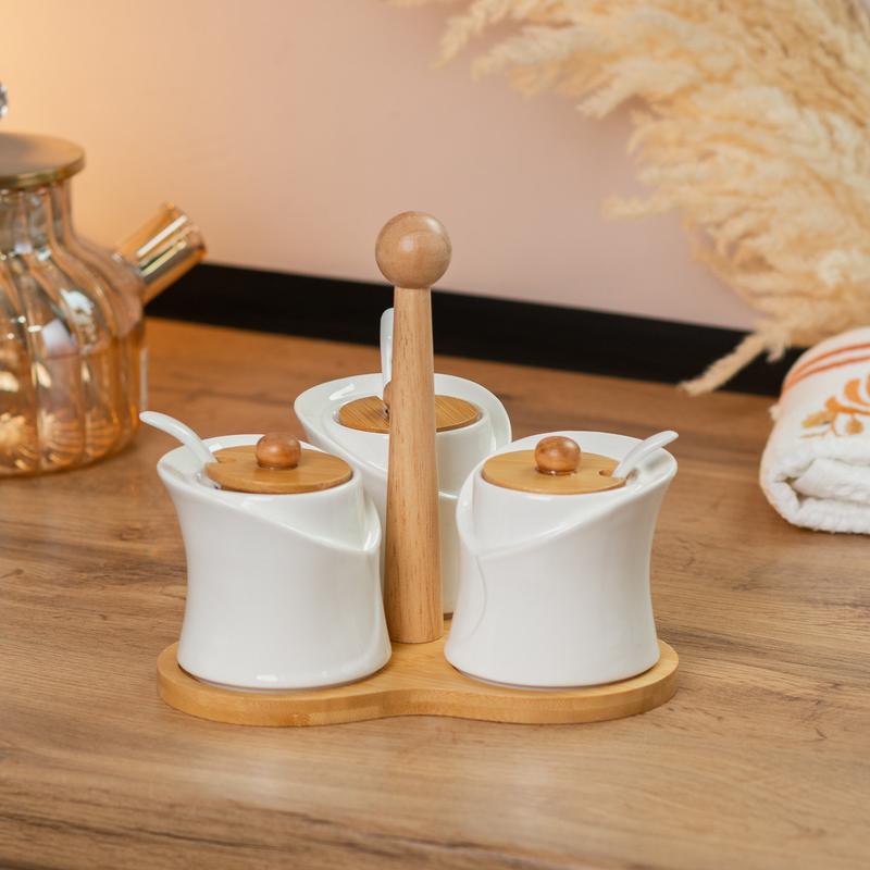 Сервировочный набор для соусов и конфитюра с ложками на бамбуковой подставке 3 шт. ve-33