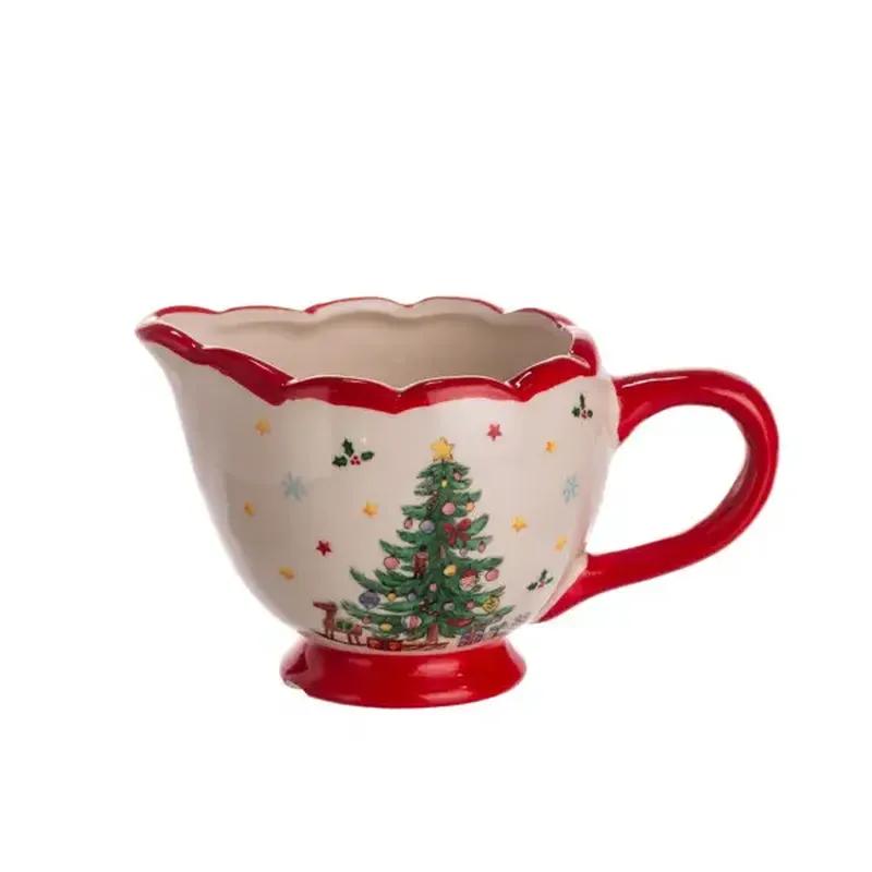 Молочник New Year – это удобный и стильный аксессуар для подачи молока, сливок или соусов. Его объем 300 мл позволяет использовать изделие как в быту, так и во время угощения гостей. Гармоничные пропорции и приятная форма делают молочник эстетичным дополнением к любому сервизу. Изготовлен из качественного фарфора, он имеет гладкую, прочную, легко очищаемую поверхность, не впитывающую запахи. Материал устойчив к воздействию высоких температур, поэтому молочник можно использовать с горячими напитками. Благодаря тщательной отделке края остаются ровными, а носик обеспечивает аккуратный налив без проливания. Высота изделия составляет 8 см, верхний диаметр 8 см, нижний 6 см, вес — 200 г, что делает его легким и удобным в пользовании. Молочник New Year сочетает функциональность и сдержанный дизайн, создавая ощущение уюта и порядка на столе. Характеристики: Материал: фарфор Объем: 300 мл Высота: 8 см Верхний диаметр: 8 см Нижний диаметр: 6 см Вес: 200 г Назначение: для подачи молока, сливок, соусов Особенности: гладкая поверхность, удобный носик, легкая очистка Характеристики: Вес 200 г Верхний диаметр 8 см Высота 8 см Гарантийный срок 14 дней Количество в наборе 1 Материал Порцеляна Нижний диаметр 6 см Объем 300 мл