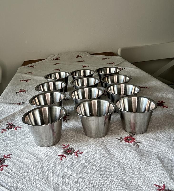 Соусницы из нержавеющей стали 12 штук Можно использовать в качестве походных стаканчиков или рюмок. вес - 30 гр. объём - 90 мл. высота - 5 см. В отличном состоянии. Привезено из Германии - Немецкое качество. Металлические соусники из нержавеющей стали, также известные как порционные чашки для соусов или миски для дипов. Они часто используются для подачи различных соусов, приправ и закусок, особенно на вечеринках с барбекю или в заведениях общественного питания. Материал: Нержавеющая сталь, что делает их прочными, устойчивыми к ударам и пригодными для мытья в посудомоечной машине. Использование: Применяются для подачи соусов, дипов, а также могут использоваться в качестве походных стаканчиков или рюмок. Продаю поштучно ЦЕНА за одну штуку. За все 12шт по 80грн. всего 960грн Вопросы можно через текстовые сообщения. !!! Обрати ВНИМАНИЕ !!! СДЕЛАНО в Германии и ещё Отправка только Новой Почтой Цена актуальна при оплате на карту.