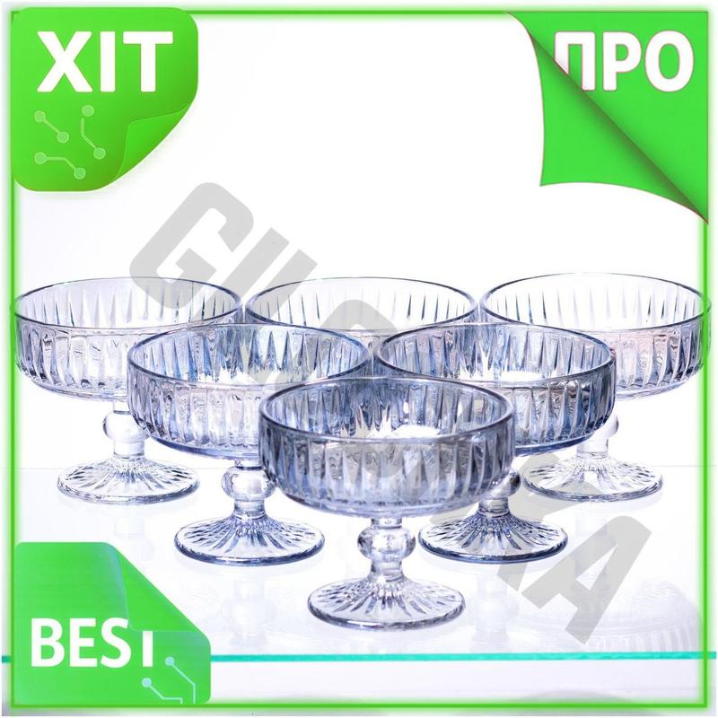 Ve креманки на ножке 6 new version шт 300 мл голубые стеклянные для десертов мороженого фр...