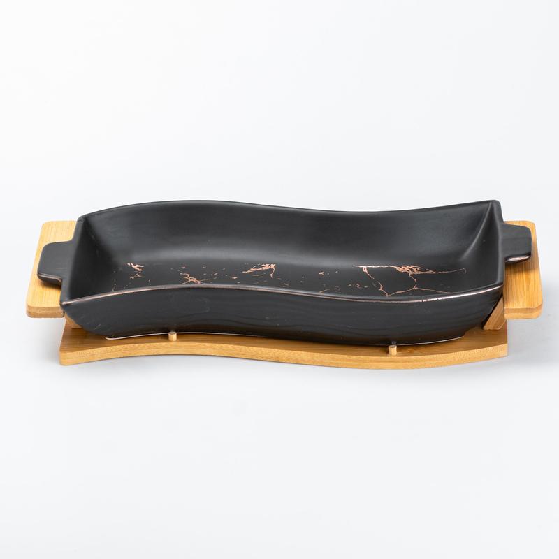 Блюдо керамическое на деревянной подставке для сервировки стола 39.5 х 20 х 6.5 см (l01763...