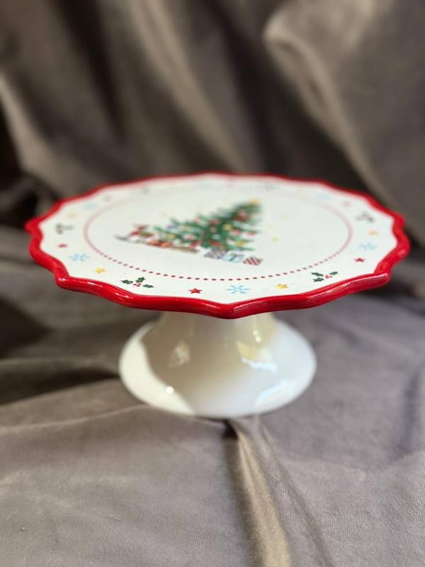 Тортовница на ножке новогодняя yiwu new year с фарфором 21 см cr-1-6