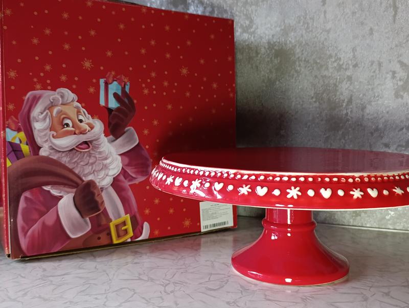Тортовница Snowflake 28см. Идеально подходит для подачи разнообразных десертов и тортов, а рисунок снежинок придадут сервировке праздничное настроение🎄🎅🤶🎁 есть небольшой скол, но его почти не заметно (можно сделать доп. фото)