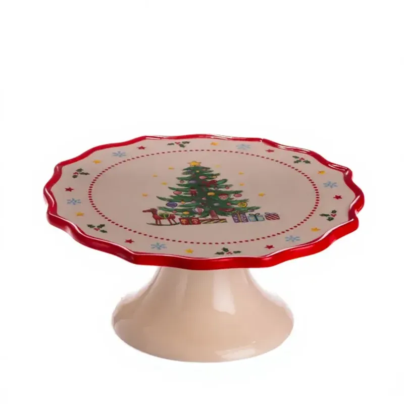 Тортовница на ножке New Year - это практичный и эстетический элемент сервировки, предназначенный для подачи десертов, пирожных или фруктов. Благодаря диаметру 21 см она подходит для компактных тортов или порционных угощений. Высота 9 см придает тортовнице выразительного силуэта, а ножка создает эффект приподнятой подачи, что смотрится опрятно и гармонично на столе. Изделие изготовлено из высококачественного фарфора, который отличается прочностью, устойчивостью к царапинам и простотой ухода. Гладкая поверхность не впитывает запахи, а белый оттенок с лаконичным декором подчеркивает чистоту линий и универсальность дизайна. Тортовница подходит как для ежедневного использования, так и для праздничной подачи десертов. Вес 600 г обеспечивает стабильность изделия, при этом он остается легким и удобным в обращении. Модель New Year сочетает практичность и сдержанную элегантность, добавляя композиции завершенный вид. Характеристики: Материал: фарфор Диаметр: 21 см Высота: 9 см Вес: 600 г Тип: на ніжці Назначение: для подачи тортов, пирожных, фруктов Особенности: гладкая поверхность, устойчивость к царапинам, легкая очистка