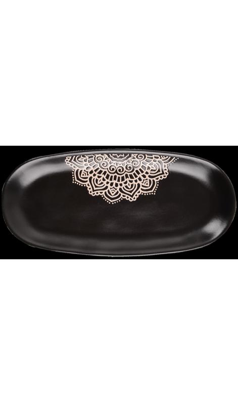 Блюдо Kora Размер: 25.5 см Материал: керамика Форма: овальная СТИЛЬНАЯ ПРИКРАСА НА ВАШНОМ СТОЛИ Тарелки и салатники Kora от Limited Edition - удобная, функциональная и красивая посуда, для любителей изысканности и стиля. Самобытный этнический орнамент и лаконичные цвета серии Kora, создают стильный комплект посуды с оригинальным дизайном. Серия Кora представлена большим ассортиментом посуды. Вы можете подобрать банки разного размера, тарелки, пиалы и чашки, которые превратят любую трапезу в праздник! ВЫШУКАЕМОСТЬ И ЭСТЕТИКА Черно-белые тарелки и салатники с этническим орнаментом - оригинальный дизайн лимитированной посудной серии. Тот момент, когда посуда может быть настоящим украшением для вашей кухни. АСОРТИМЕНТ И РАЗМЕР Серия включает в себя ряд тарелок: обеденные, суповые и десертные, разного размера и пиал. Также чашки, стаканы и емкости с герметичными крышками для сыпучих продуктов.