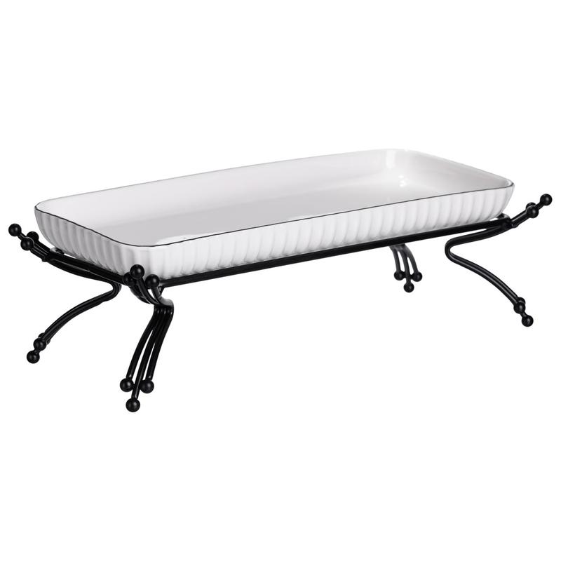 Фарфоровое блюдо для сервировки на металлической подставке 29.5×12×9 (см) белый с черным l...
