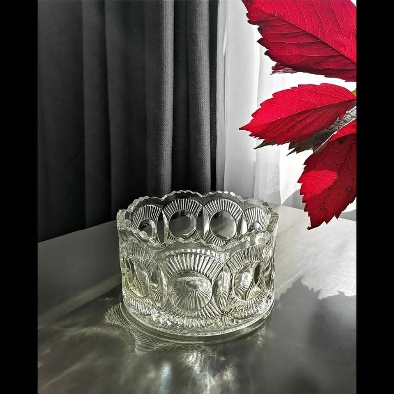 🍬🍏🍒 Эффектная советская ваза 👑"Корона"👑 для конфет, орешков, карамельных сухофруктов, меда или варенья. Также ее можно использовать в качестве салатника либо как элемент будуарного набора, шкатулку для мелочей или просто в качестве интерьерного декора! Однозначно, - винтаж, 1950-е годы, сейчас таких уже не делают - толстостенное тяжёлое литое стекло с крупными застывшими пузырьками воздуха, широким бортом и граненным дном, легкий лимонный оттенок прессстекла, придающий изысканности изделию, создавая эффект наполнения солнечным светом! Выполнена методом литья с последующим декоративным прессованием, четко видны линии соединения форм. Изделие маркировано, но это творение Уршельского стекольного завода имени 10-й годовщины Октября. Завод, основанный в 1858 году знаменитым мастером-стеклодувом И.С. Мальцевым, был расположен в посёлке Уршельский в Гусь-Хрустальном районе Владимирской области РСФСР. Первоначально назывался Уршельская хрустальная фабрика. В 1914 году на заводе была запущена печь-автомат и в этом же году появились первые граненые изделия машинного производства. Особенно сей завод славится отделкой посуды, так называемой "брильянтовой". Вазочка довольно крупная, высота - 11 см, диаметр функциональной части - 16 см. Состояние отличное, без дефектов.