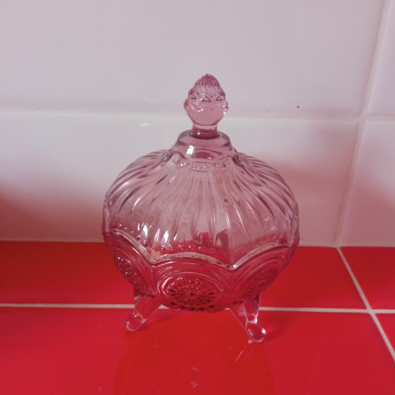 Конфетница из розового стекла с красивой шишкой в идеальном состоянии.отлично на подарок....