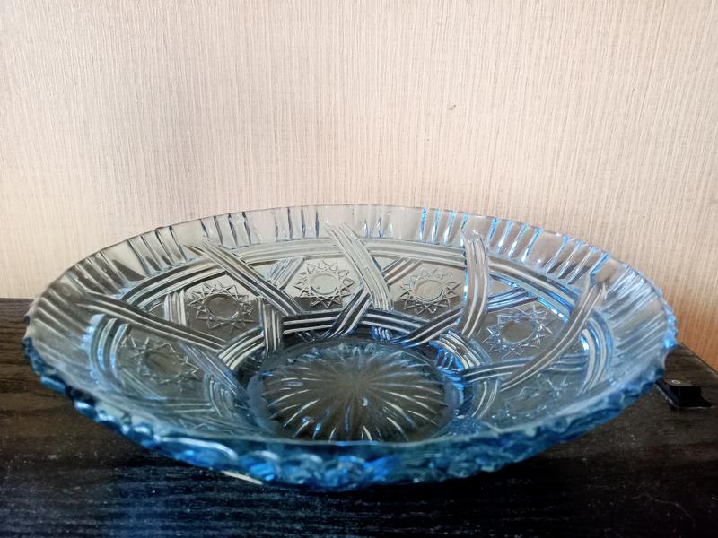 размеры 21/6 см. красотка синего цвета стекло. без сколов трещин, единственное замечание-неровности дна, за счет чего одна сторона выше другой. дно ровное не качается. если не знаешь и не обратишь внимания, что одна сторона выше другой. упаковка надежное мое и отправка вкрпоштой или новой.